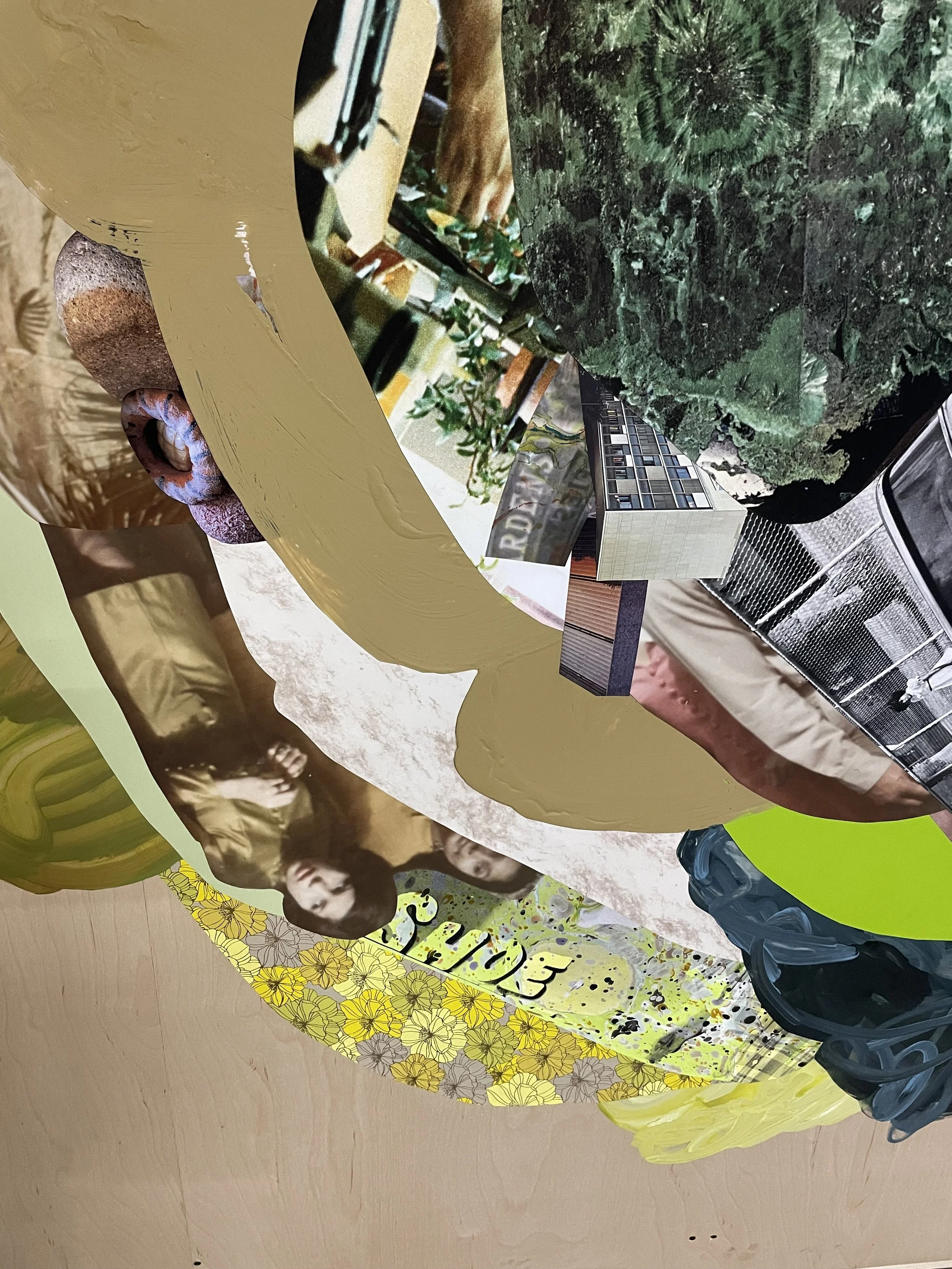 This site-specific installation layers memory through family photos from the Quintanilla family (my maternal lineage), found materials, and brushstrokes echoing my body's contours. Inspired by the natural and built environments that have shaped my family’s experience along Rainey Street and Town Lake, its creation became an exercise in processing personal history while reflecting on the resilience of water’s flow, open grassy fields, and enduring stone—set in contrast to the hard geometry of skyscrapers that now press into this once-familiar landscape.